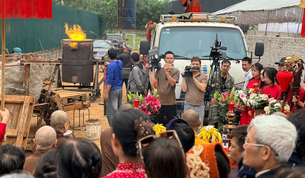 Nhân dịp này, chư Tôn đức và toàn thể đại chúng cũng cử hành trì chú rót đồng đúc tượng Mẫu Bán Thiên.